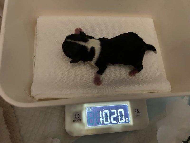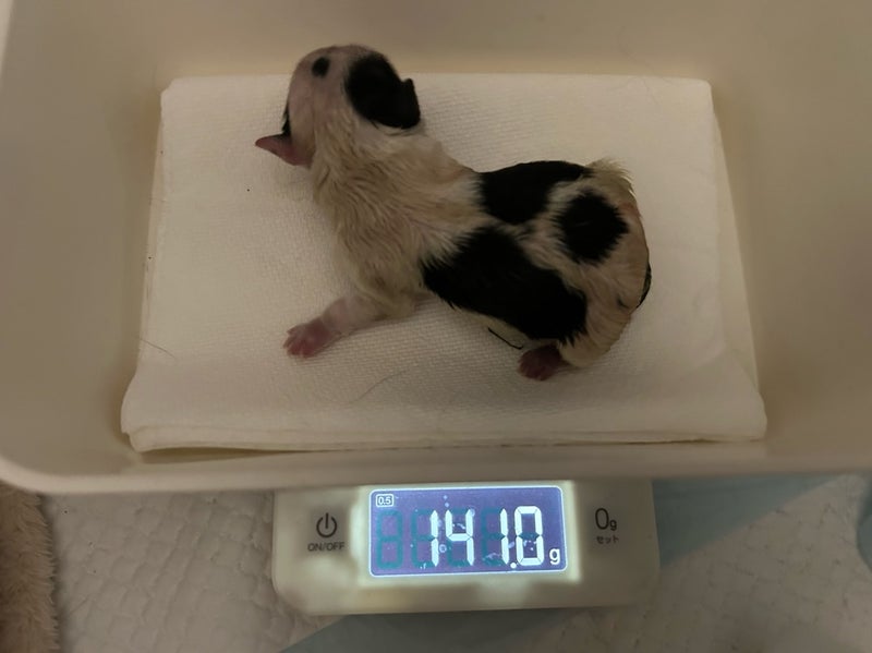 こちらは、生まれて間もない、白黒ブチの男の子です