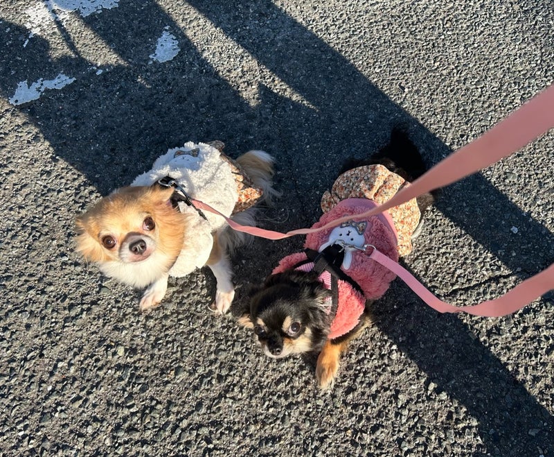 帰宅してシャンプーして終わりのさっちゃんとなっちゃんのお散歩でした〜〜