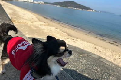 チワワのるーく、ココ、ルルでお気に入りの砂浜散歩。