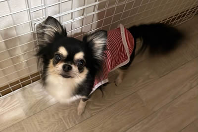 クレートの中にそれぞれチワワが入ってます。